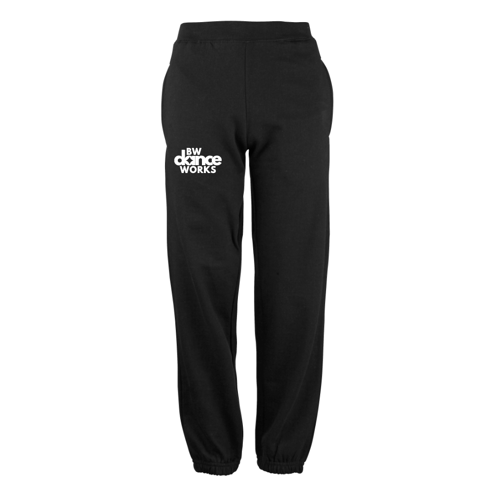 Arrive to class in comfort with these soft and breathable kids jogger bottoms. With the BW Dance Works logo on the front thigh, it is perfect for getting to and from class, rehearsals, shows or competitions.