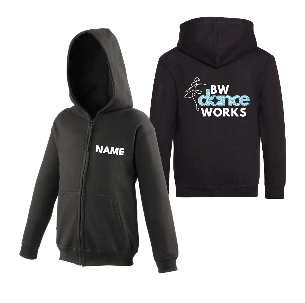 Designed for young dancers, this BW Dance Works kids Zoodie (zip up hoodie) is soft, warm and made to move. With the option to have your child’s name on the front and the BW Dance Works logo on the back. Perfect for class, comps or everyday wear. Please note, the ‘dance’ in the logo will be in our usual blue glitter.